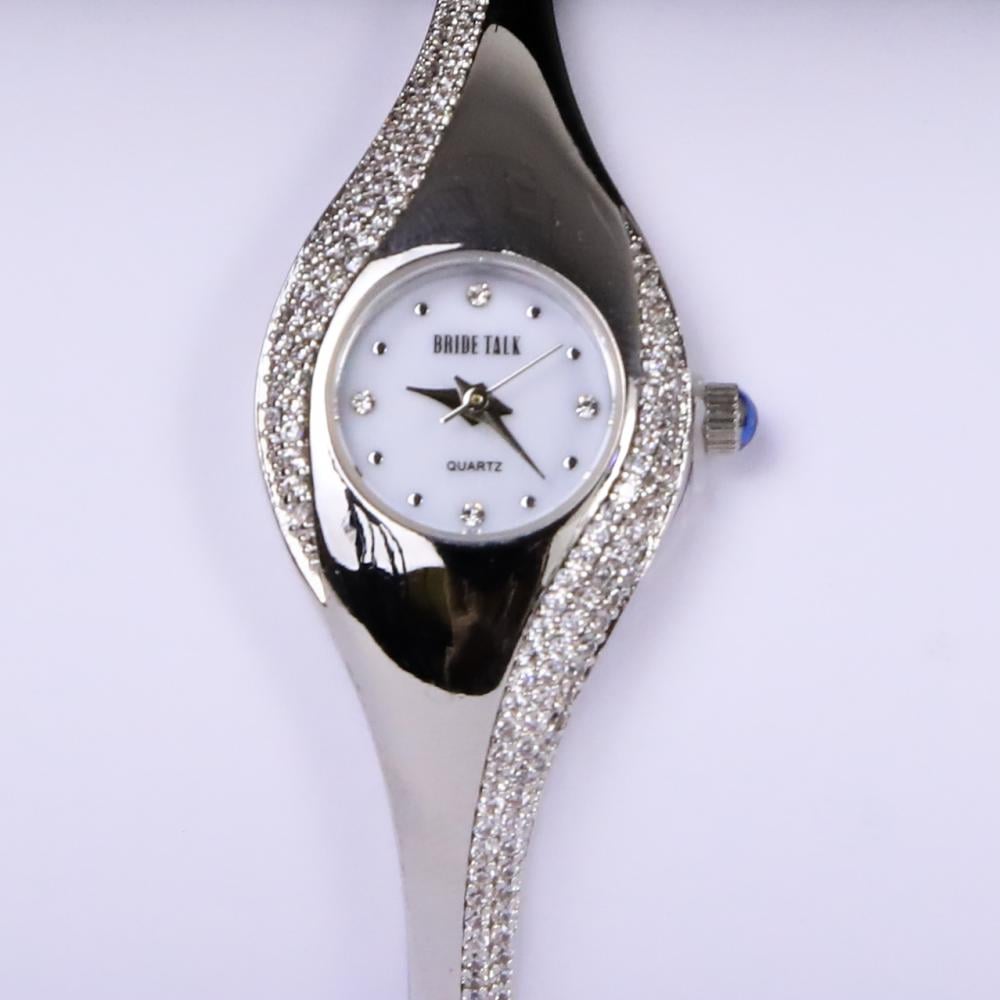 ساعة نسائية فاخرة لون فضي بلون ميناء ابيض بضمان