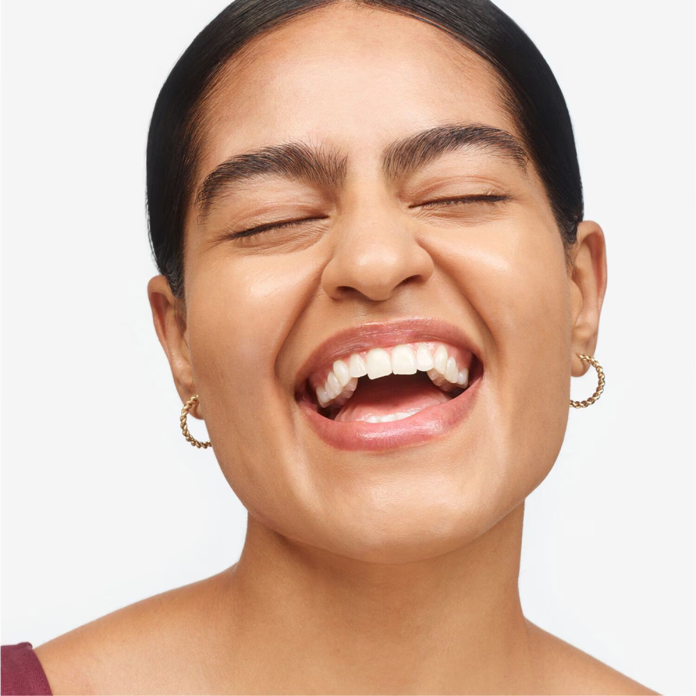 - ربتي برفق على البشرة المرطبة مع التربيت للخارج للمزج أو التلميع باستخدام فرشاة الوجه المرطبة من جلوسييه (Glossier ).
