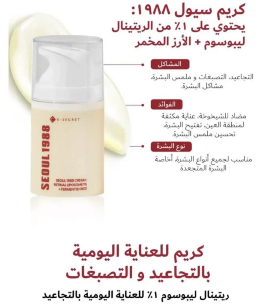 كريم K-SECRET Seoul 1988 هو خيار فعّال للعناية بالبشرة لمن يبحث عن مظهر أكثر شبابًا وإشراقة طبيعية.
