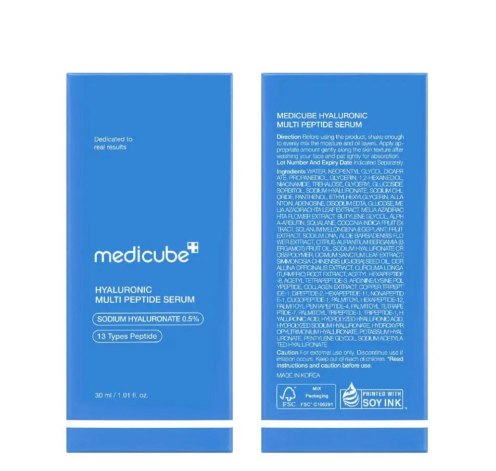 استمتعي ببشرة ناعمة ومشدودة ومشرقة مع سيروم ميديكيوب بالهيالورونيك والبيبتيدات، تركيبة متقدمة تعمل على ترطيب البشرة بعمق، تحسين مرونتها، وتقليل مظهر الخطوط الدقيقة.