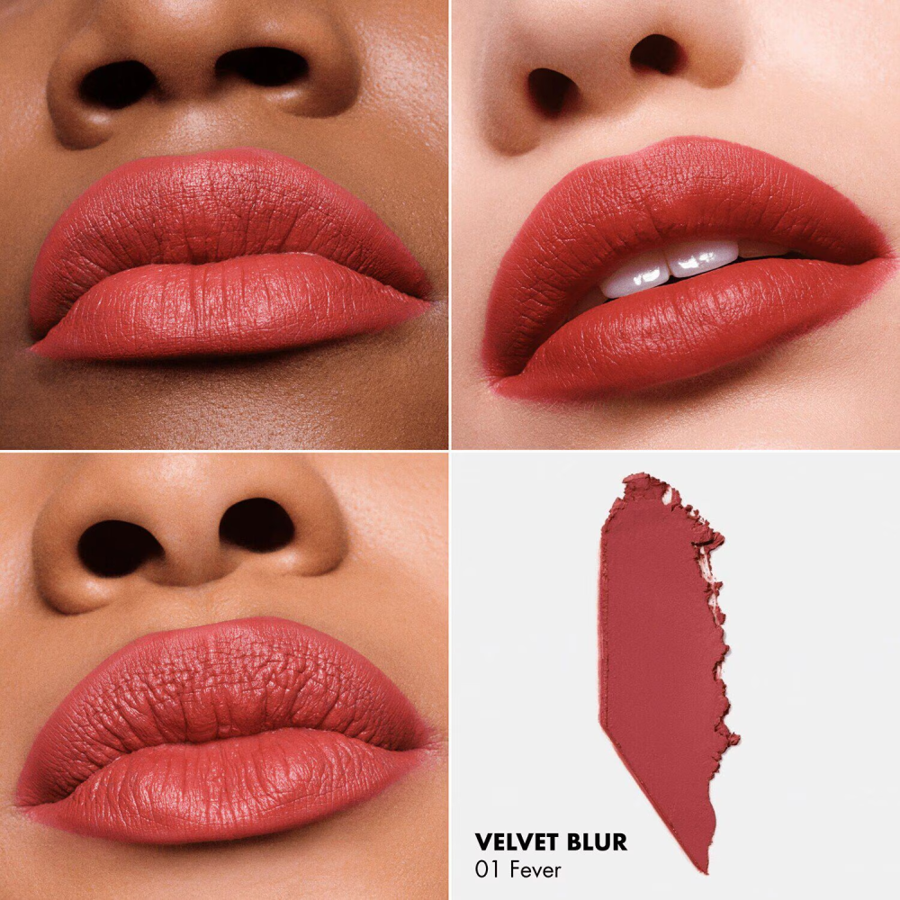 لون متسق بلمسة واحدة. يوفر فيلفيت بلار (VELVET BLUR) لونًا بصبغة عميقة بلمسة واحدة. تبدو تركيبة أحمر الشفاه غير اللامعة الخفيفة والمشبعة بالرطوبة خفيفة جدًا بمجرد وضعها وتدوم حتى 12 ساعة*، بينما يعانق الطرف المخصص على شكل قبة شفتيك لتتألقي أينما تكونين.